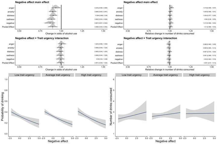 The hypothesis that urgency, a trait quantifying individual differences in impulsive behaviors driven by intense emotions, moderates associations between affect and alcohol use has received inconsistent support in ecological-momentary-assessment research. In this Registered Report, we tested whether trait- and state-level urgency moderate affect-substance use (alcohol and cannabis use) associations in young adults. Four hundred ninety-six adults (ages 18–22) completed ecological-momentary-assessment surveys five times daily across 32 days over 8 weekends. Positive affect was associated with increased alcohol-use probability, and negative affect was associated with decreased alcohol-use probability; cannabis use showed minimal associations with daily affect. Contrary to hypotheses, we found minimal evidence that urgency moderated daily affect-substance-use associations. Interaction effects were consistently estimated around the null value with narrow credible intervals. Results challenge theoretical predictions about urgency’s role in emotion-driven substance use and support simpler affect-substance-use models.
